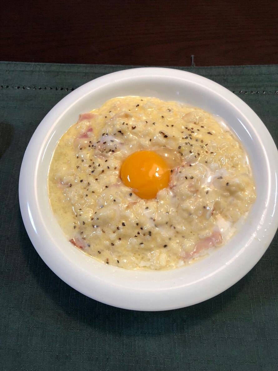 カルボナーラ風リゾットの卵のせ レシピ 作り方 By おかずでちん 楽天レシピ